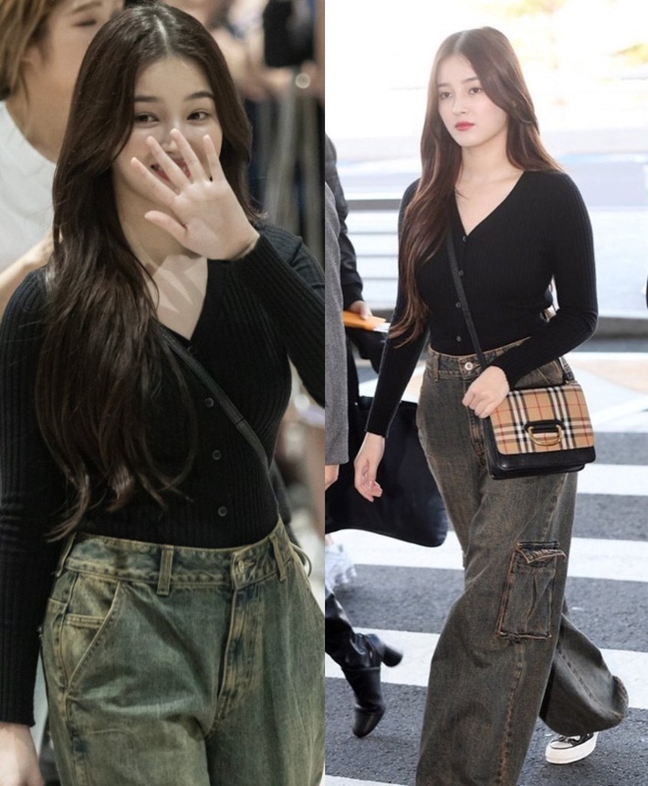 Giống như nhiều idol khác, Nancy cũng sở hữu cho mình chiếc quần jeans ống rộng lưng cao. "Thiên thần lai" chọn cách mix đồ chuẩn với cardigan đen, khiến tổng thể vừa đương đại, vừa nhẹ nhàng, và quan yếu hơn là giấu dáng hiệu quả.